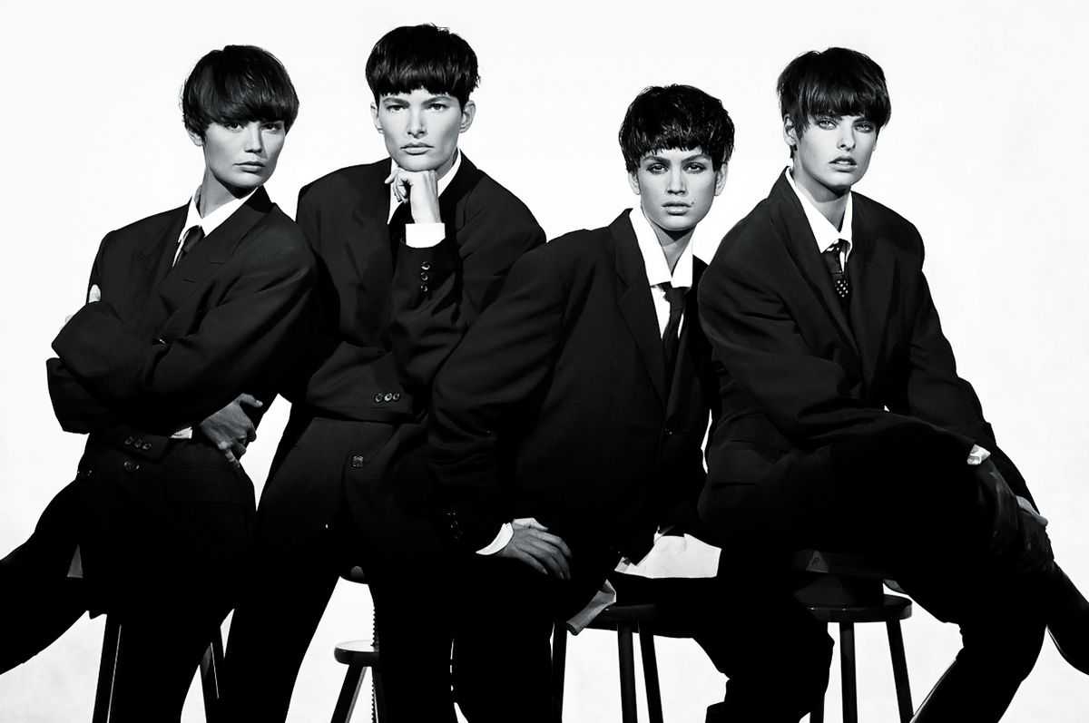 Улли Штайнмайер, Линн Костер, Синди Кроуфорд и Линда Евангелиста в объективе Питера Линдберга для Vogue Italia, март 1989 г.